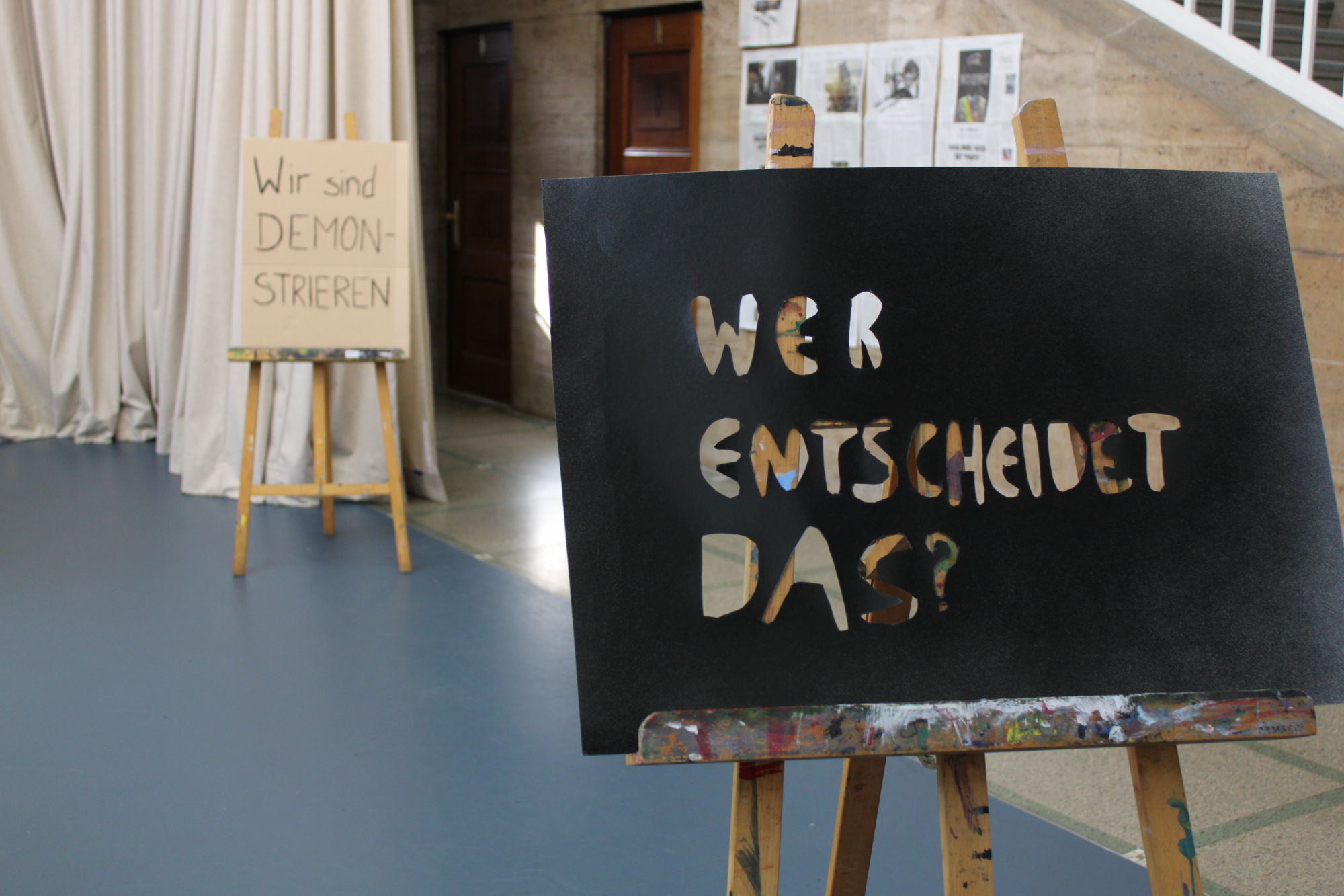 Am 03.03. hat der Kunstkurs des PGW-Profils „Demokratie und Verantwortung“ den Spagat zwischen Friedensdemo und Ausstellung versucht. Nach kurzer Überlegung haben wir unsere Ausstellung – Abschluss-Highlight des Kooperationsprogramms Kunstpioniere – zusammen mit unserer Künstlerin Sabine Dittmer wie geplant im Atelier I der Kunsthalle aufgebaut und eine Abwesenheitsnotiz auf einer Staffelei dazu gestellt. Mit ganz reduzierter, aber sehr engagierter Besetzung im Ausstellungsraum wurde dann sogar noch unsere Siebdruckaktion realisiert und nun werden Ideen und Gedanken aus der Ausstellung auch ganz physisch auf Stoffbeuteln in die Welt hinausgetragen.
