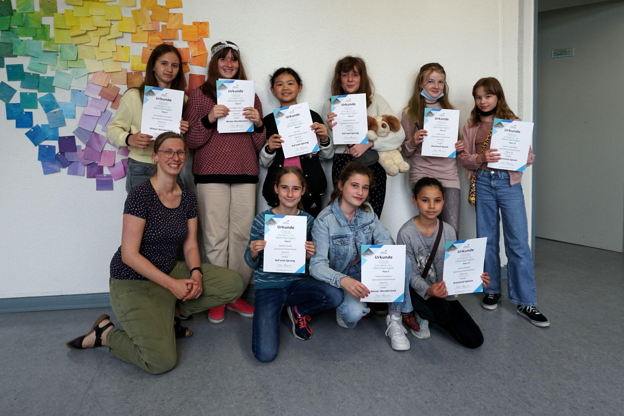 Gleich drei Preise gingen an die Schülerinnen des 4-stündigen Kunstkurses in Jahrgangs 5 unter Leitung von Frau Kühn für die Gestaltung der besten Skisprungschanze. Die eingereichten Modelle musste nicht nur in der Gestaltung überzeugen, sondern auch funktional sein und die Maß- und Materialvorgaben exakt einhalten. Herzlichen Glückwunsch an alle Gewinner*innen!