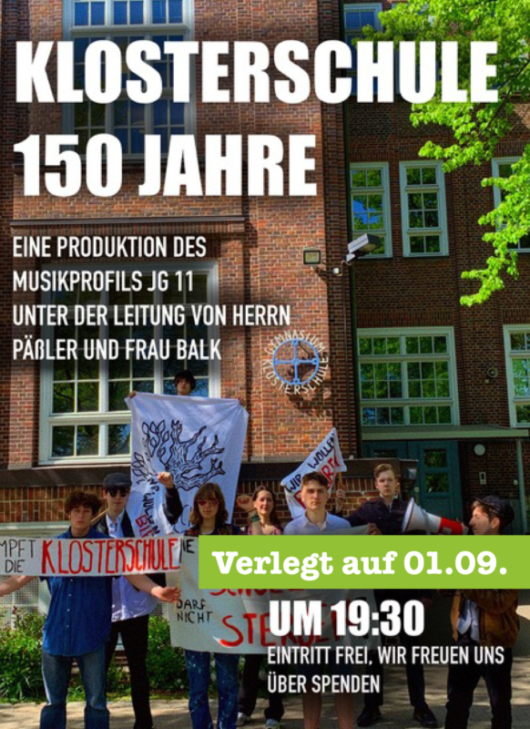 Am Donnerstag, den 1.9.um 19:30h werden nun endlich nach zwei krankheitsbedingten Verschiebungen in der Aula der Klosterschule in Form einer Collage die 150 Jahre seit Gründung der Schule durchlaufen.