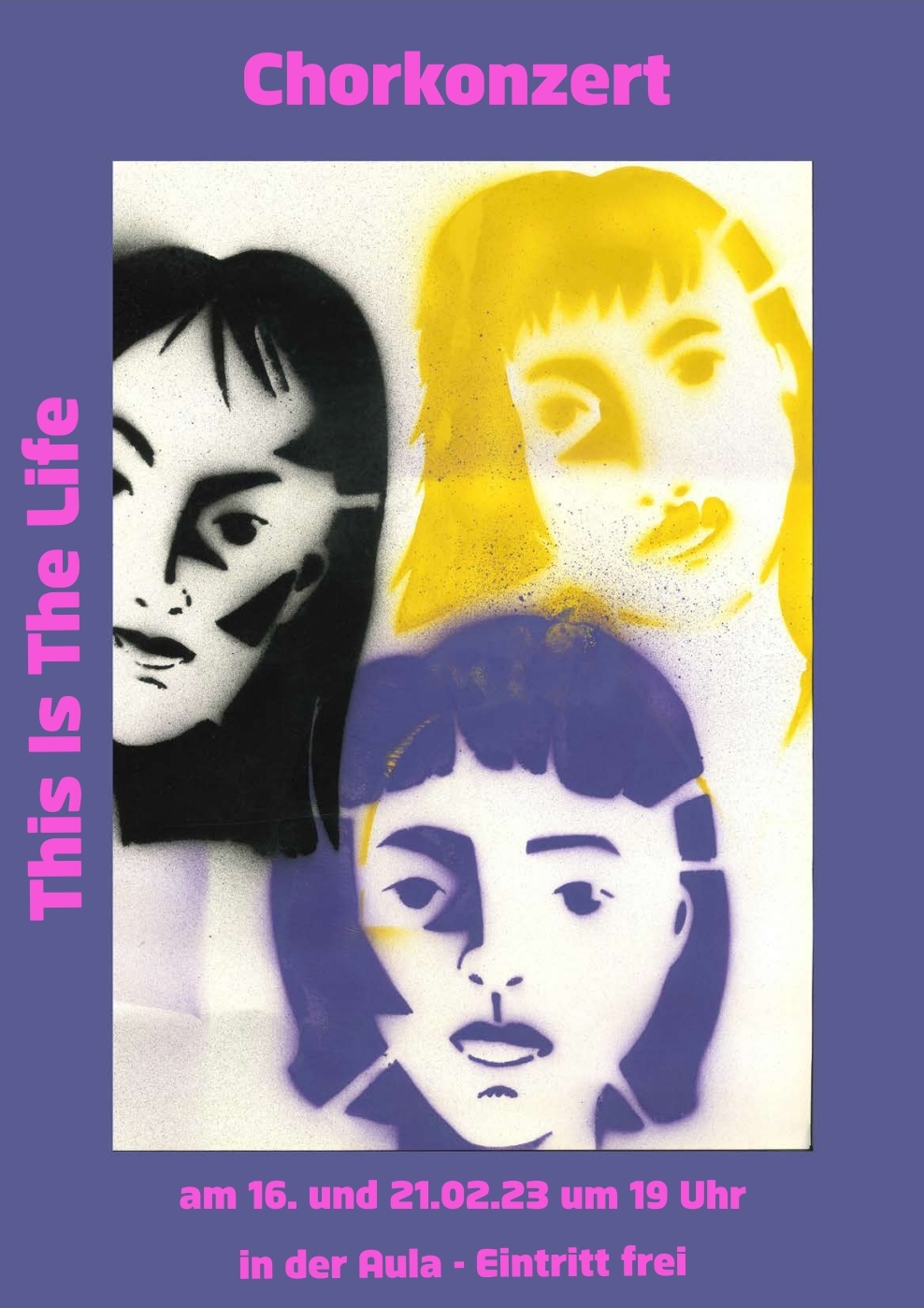Wir möchten Sie und euch zu den Chorkonzerten am 16. und 21. Februar um 19.00 Uhr in die Aula einladen. Dort werden knapp 80 Schüler*innen aus den Jahrgängen 5-12 auftreten und verschiedene Beiträge performen, die u. A. auf der Chorreise zu Beginn des Monats intensiv geübt wurden.