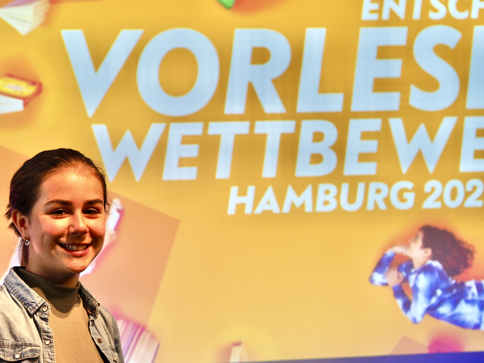 Unsere Schulsiegerin Lola aus der 6b, die im Februar den Regionalwettbewerb der Region Mitte für sich entscheiden konnte, trat am Donnerstag vor Pfingsten erneut beim bundesweiten Vorlesewettbewerb an. In der Zentralbibliothek Am Hühnerposten fand der Landesentscheid aller Hamburger Regionalsieger*innen statt, bei dem die 11 besten von insgesamt 11.230 teilnehmenden Hamburger Schüler*innen in zwei Runden gegeneinander antraten: Einmal mit einem vorbereiteten eigenen Text, einmal mit einem unbekannten Fremdtext.