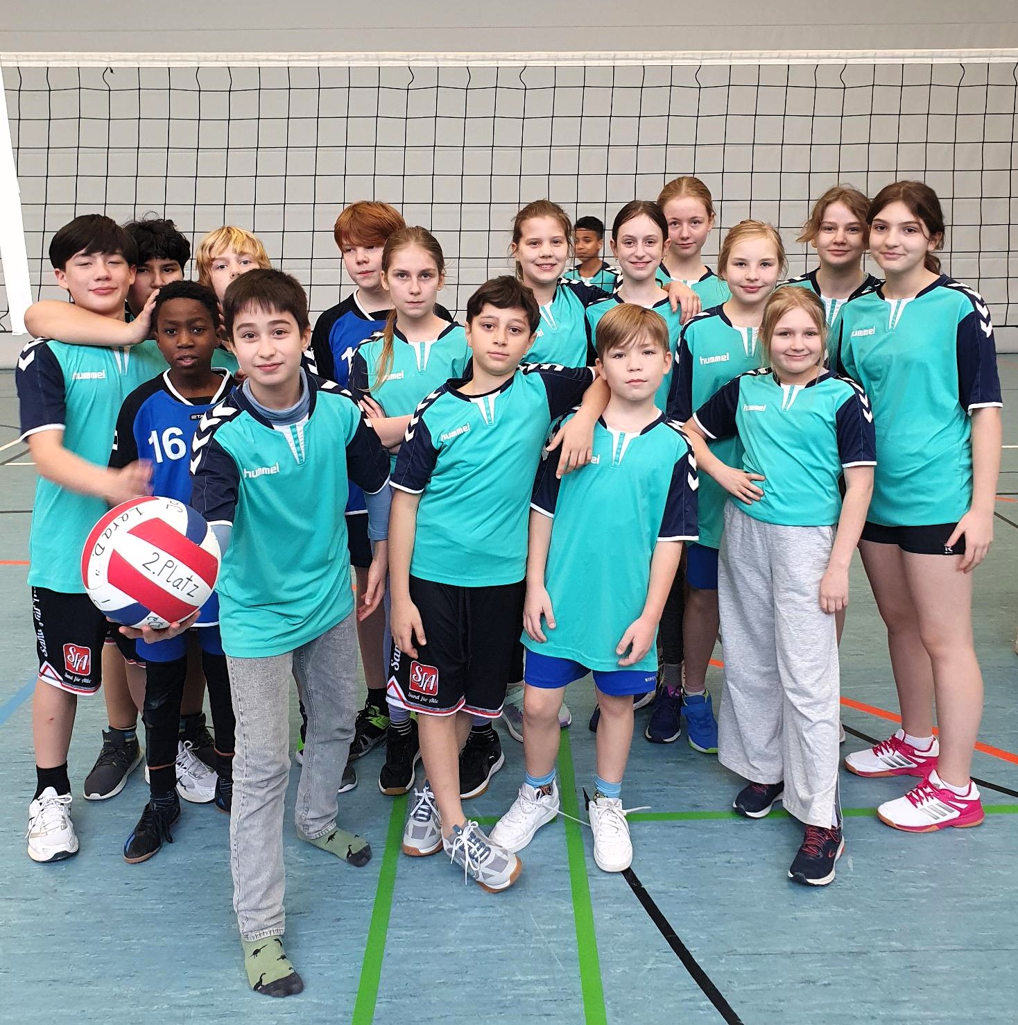 Volleyball ist seit vielen Jahren ein großer Hype an der Klosterschule. Ihrer Leidenschaft folgend, stürmten drei Teams der KLS den Mixed-Wettbewerb für die Klassen 5 bis 7. Mit dabei: viele amtierende und ehemalige Sieger:innen des schulinternen 5er-Cups. In der Vorrunde wurden Teams des Johannes-Brahms-Gymnasiums und des Gymnasiums Ohmoor abgehängt. Bis es soweit ist, singen die Teilnehmer:innen auf den Fluren und Klassenräumen am Westphalensweg ständig: „Finale, o-ho, …!“
