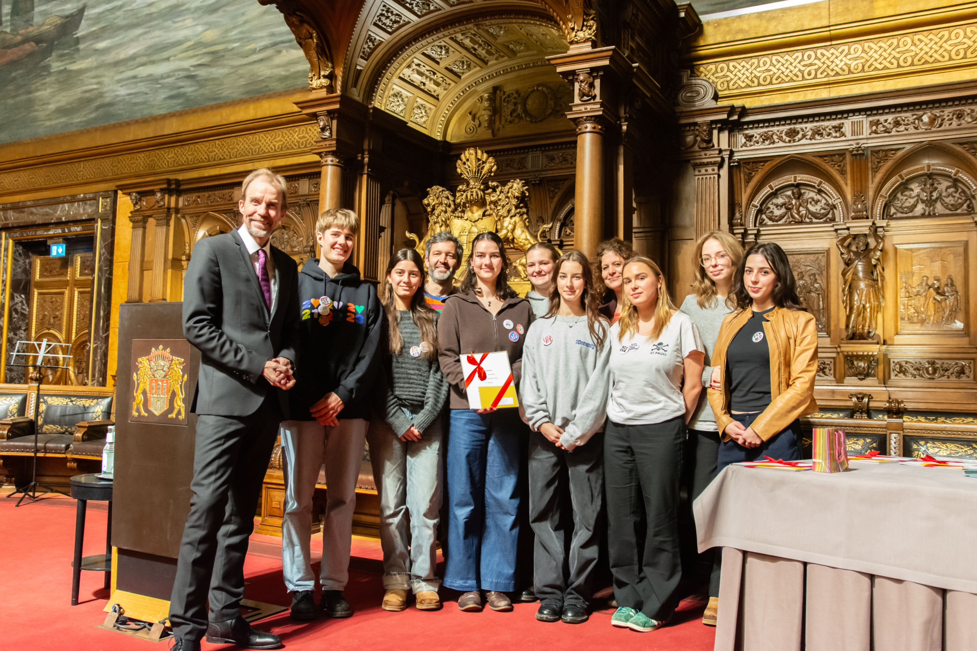 Urkunden-Regen für die Nachwuchs-Historikerinnen! Das Profil „Macht und Inszenierung“ (S4) hat beim Geschichtswettbewerb des Bundespräsidenten nicht nur einen Landessieg und den Gruppenpreis gewonnen, sondern auch auf Bundesebene einen 3. Platz erreicht. Dafür wurden die Schülerinnen jetzt im Rathaus vom Staatsrat der Behörde für Bildung und Berufsbildung geehrt.