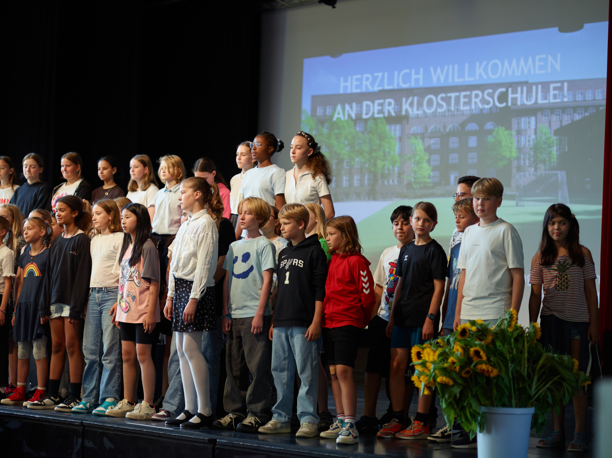 Am vergangenen Montag wurden an der Klosterschule vier neue fünfte Klassen eingeschult. Die neugierigen Kinder, die sich auf ihren ersten Schultag freuten, wurden von ihren Familien begleitet. Besondere Höhepunkte waren die Tanz-und Choraufführung der 6. und 7. Klassen, die mit ihrem Auftritt alle Anwesenden begeisterten. Mit strahlenden Gesichtern und einem herzlichen Applaus für die Darbietungen klang die Veranstaltung aus und hinterließ bei allen Beteiligten eine freudige Erwartung auf die kommenden Schuljahre.